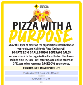 Join us at California Pizza Kitchen to support Feeding the 5000: Thanksgiving Outreach!