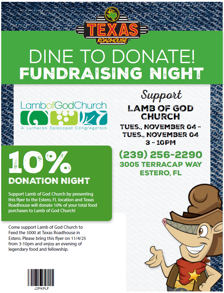 Join us at Texas Roadhouse to support Feeding the 5000: Thanksgiving Outreach!